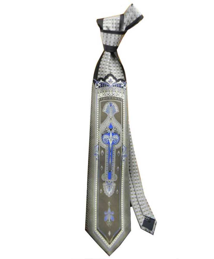 variante 11 cravatta in seta grigia con biancorilevante ea motivi geometrici chiaro scuri seta lucida