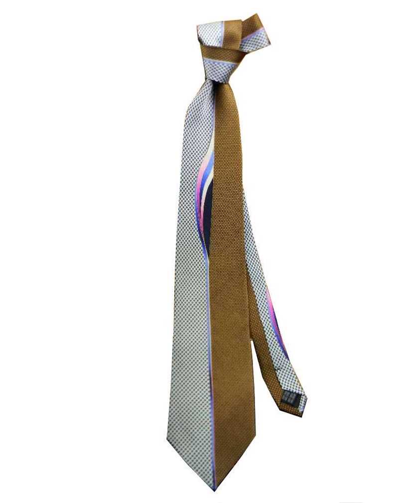 variante 18 cravatta particolare fango nocciola con inserti neri grigi e stacco di rosa salmonato