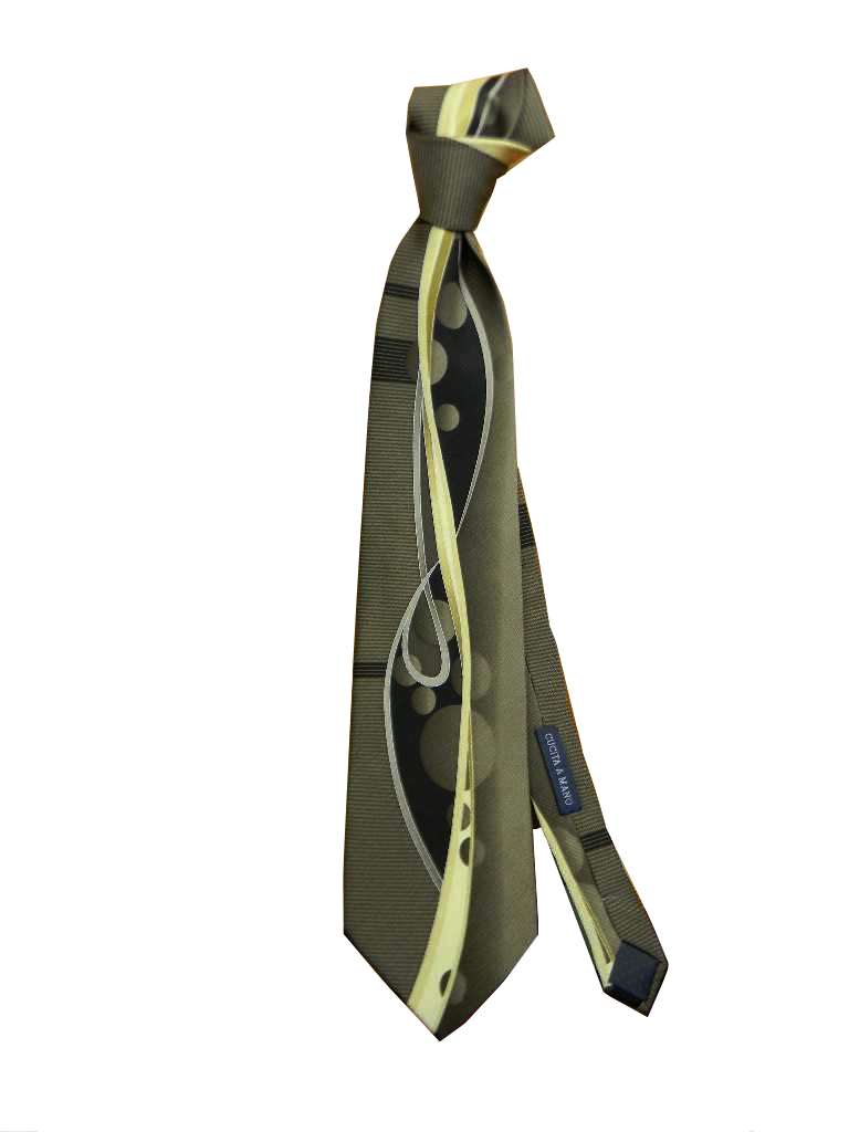 variante 3 cravatta fantasia particolare in seta verde raso lucido con motivo a rientranti beige nero;