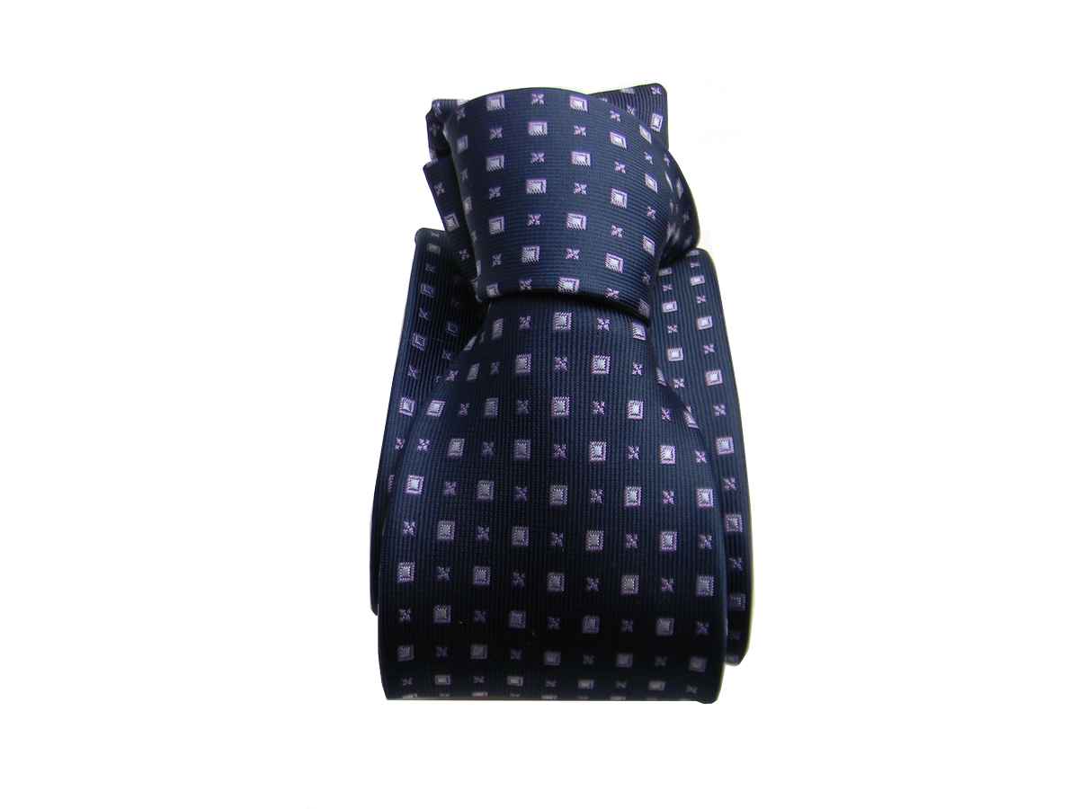 - 1 cravatta blu con disegno a piccoli fiori con piccolo motivo a quadretto su fondo blu con fantasia lilla rosa viola,