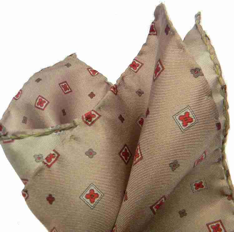 Pochette da taschino per uomo, realizzate in 100% seta made in italy nella colorazione di fondo sul tono del beige